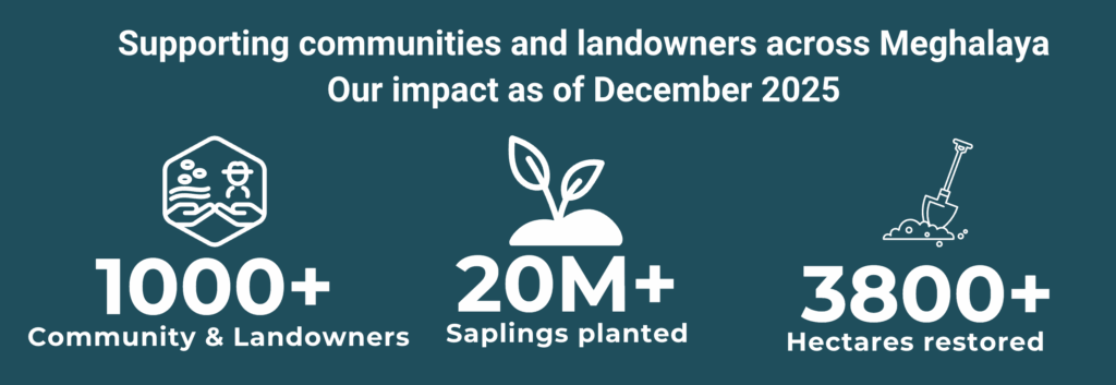 The Thongnirit clan, led by Stimding Thongnirit, has partnered with the Regeneration Meghalaya Project to restore their degraded land through rehabilitation and tree planting, including building two ponds that have transformed the surroundings and provided new livelihoods.